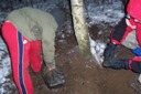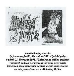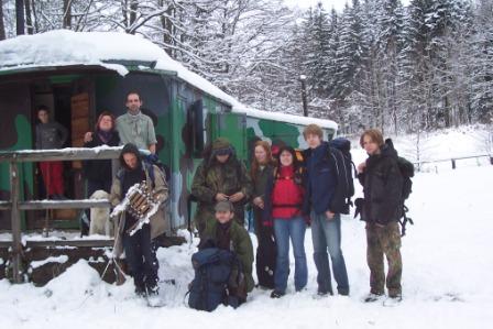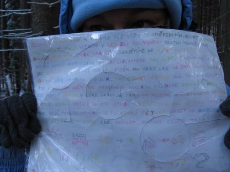 Sníh napadl v pátek. Hurá!- Aljaška na sněhu je nejlepší. I když ten dlouhý pochod zasněženou plání k vysněné Kontrole 1 obohacený bočním větrem nebyl zrovna procházkou. o které mnozí ve svých snech sní. Navíc Kontrolu 1 schovanou ve škvíře pod břízou Mlátičkou nám někdo vzal. Kontrola 2 nacházející se na druhém břehu Moravice v lese na křižovatce cest a zapadnutá hluboko v prasklém kmeni stromu nalezena byla, jakožto i Kontrola 3 pod křeslem v lomu. K Vagónu se první dostal Peter, za ním VerLiba, třetí byl Jiřík a pak ostatní.