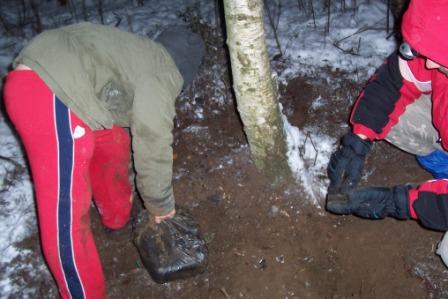 V šifře nakonec vyluštili: Ten, kdo neumí tancovat, musí se zlikvidovat, neboť už není léto. Úplně jasně z toho vyplývá, že další zpráva je v hranici dřeva. Ham hyla humanitární homoc h halší hprávou. Tu vyluštila Markéta. Měly se najít dvě polínka se zprávou. Brčko prohledal (rozebral a vyházel) celou hranici dřeva a pak se s Jiříkem vypravili hledat bílý strom s křížkem, pod kterým byl zakopán poklad. Ostatní se na to vybodli, jsou to lemry líné!!