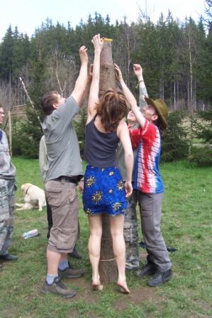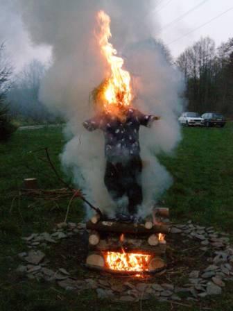 Pálení bylo také bez sněhu (ještě aby v dubnu nasněžilo!). Ráno probíhali soutěže jako házení vejcem ve dvojici, či házení na cíl. Protože byl letos přestupný rok, pálili jsme čaroděje. Potom chtěl Pítrs upálit Joey jako čarodějnici v inscenovaném procesu, ale v tom mu bylo zabráněno a sám měl co dělat, aby v ohni neskončil.