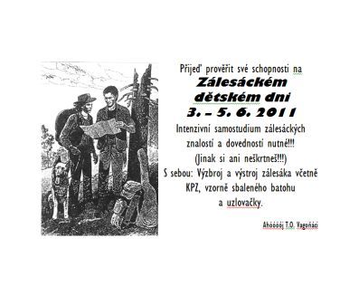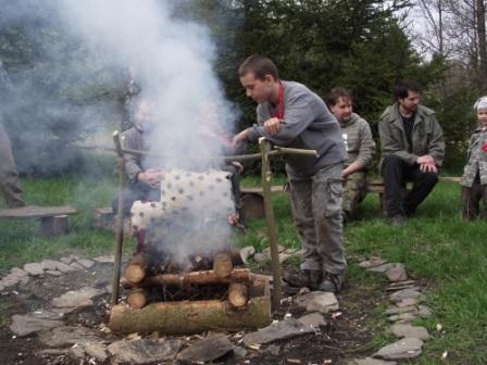 V pátek se sjeli na Vagón všichni, kteří si chtěli prověřit své zálesácké dovednosti. Prvním úkolem bylo příprava ohně maximálně na 3 zápalky a uvařit si oběd. Všichni jsme to zvládli. Někteří si udělali superdobrý gyros.