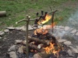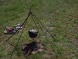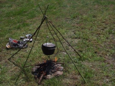Večer zapalujeme trojhranný oheň. Vlastně ho zapalovaly děti s maminkami. Hlavní organizátor Kečup už v 5 hodin začíná vyrábět camrátka a pak u ohně kontroluje KPZetky těch, co si je vzali s sebou.