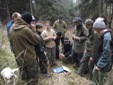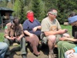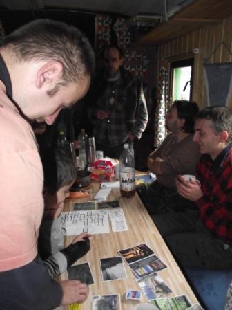 Ráno, což bylo kolem poledne, se budíme a pomalu vstáváme. V dopisech byla rozstříhaná křížovka a spousta fotek. V balících jsme objevili skládací metr, pravou ruku a lahvičku se záhadnou čirou tekutinou. Nakonec se podařilo vyluštit nic neříkající tajenku: Pod třemi kameny. A co jako? Čert hlásí,že jedny viděl na krtinci za vagonem. Honem běžíme rozkopat krtinec. Tam nic. Obcházíme místa na fotkách a všude jsou tři kameny! Po opětovném rozkopávání krtince a brutálním výslechu Krtečka nakonec hledači pochopí, že asi musí postupovat dle slov seřazených v křížovce. V lese za řekou u studánky hledají podklad mezi maliním. Nakonec ho první objeví Ruprecht. Vevnitř je mňamka.