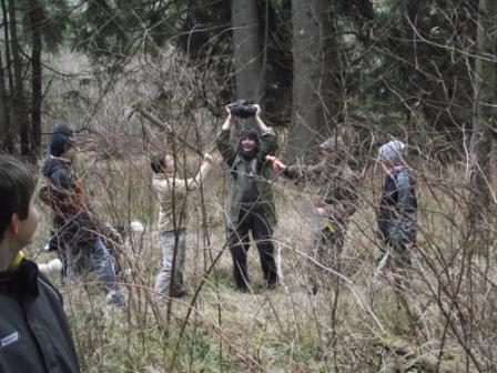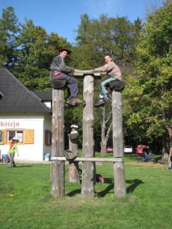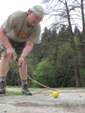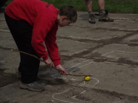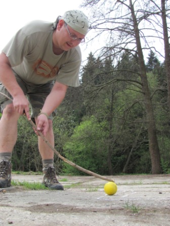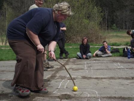 Akci připravil Koza. První soutěž spočívala v koulení míčku klackem v předem vymezené cestičce. Nejhorší na tom bylo, že se nám neustále ten míček smál do gzichtu.