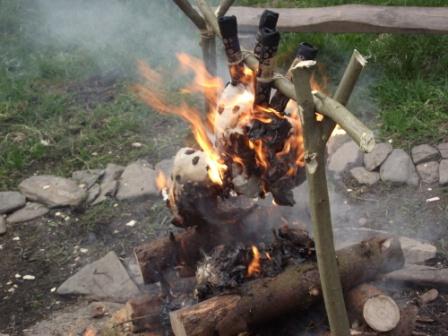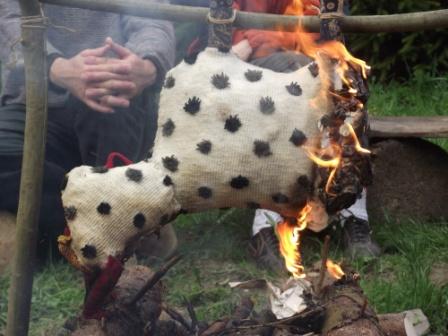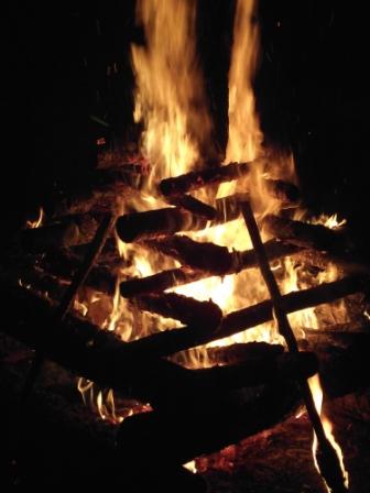 Večer upalujeme kozu! Hranice hoří moc pomalu, tak Koza na přání nedočkavců pomůže koze rychleji vzplanout.