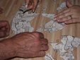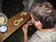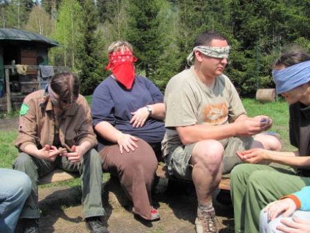 Poté jsme slepí po hmatu hráli kimovku. Se zavázanýma očima jsme si podávali různé předměty a snažili jsme se zapamatovat, co nám prošlo rukama. Nejtěžší bylo vůbec poznat, o jakou věc se jedná. Prstový maňásek, had, disketa či ořezávátko byly těžkým oříškem. Poté, již bez zavázaných očí, jsme tyto předměty zapsali.