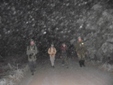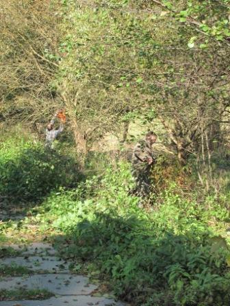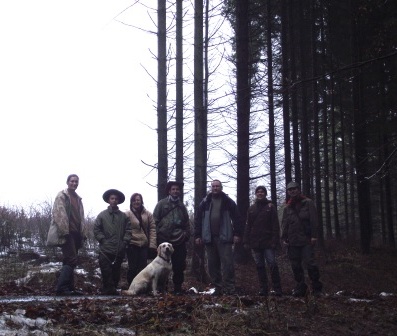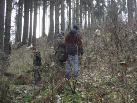 Posléze jsme vyrazili a znenadání jsme potkali myslivce. „Hoši kam jdete?“ „Tam a tam.“ „No, hlavně nechoďte zpátky, ať vás netrefíme!“ Stejně jsme měli pocit, že právě naopak nás poslali do palebné zóny a doufali v tučný úlovek skýtající mladé i starší maso, obíračku, jen uzené mezi námi nebylo -jsme samí nekuřáci.