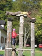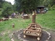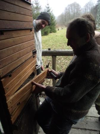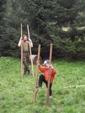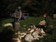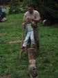 Neděle: přijíždí Otrok, začíná práce. Děláme střechu na kolník, ořezáváme stromy a sekáme dříví.