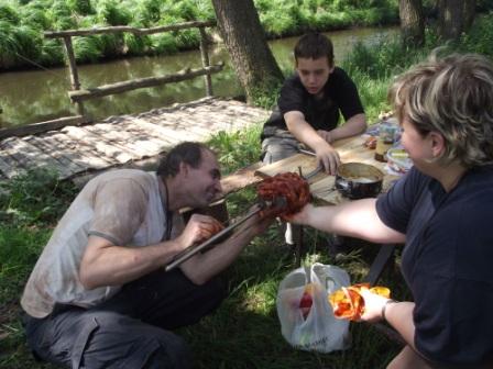 Po práci jsme šli opět na ryby jako vloni a za odměnu jsme měli večer excelentní vystoupení mažoretky Káti.