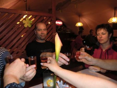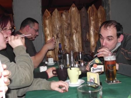 Po rychlém sestupu roklí jsme provokatéra Kozu zasypali posledním zbytkem sněhu. Za chvíli jsme už slintali hlady před první hospodou, ale ta otevírala až ve 2.
