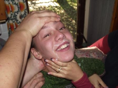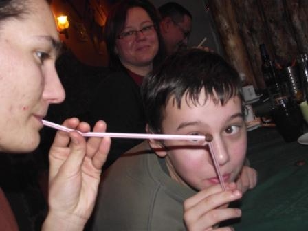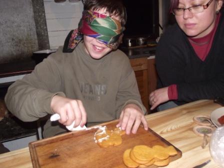 Od zastávky B.-Lesů jsme šli už pěšky a klouzali jsme po ledě. Ve Vagóně jsme soutěžili s brčkem a kukuřičnými bobky a pak v malování perníčků, normálně i po slepu. A Otrok se s námi rozloučil.